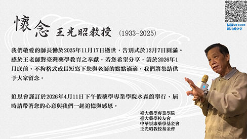 追思會謹訂於2026年4月11日下午假藥學專業學院水森館舉行,訊息容後公告。屆時請帶著您的心意與我們一起追憶與感恩。 請於2026年1月31日前提供您的分享(留言、文章或圖片)至 https://reurl.cc/W8xNk5 |
